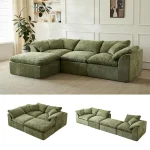 Combination: L-shaped109" Modern Cloud L-Shaped 3-Seater Oversized Deep Seat Chenille Fabric Sofa green Modular Sectional with Ottoman